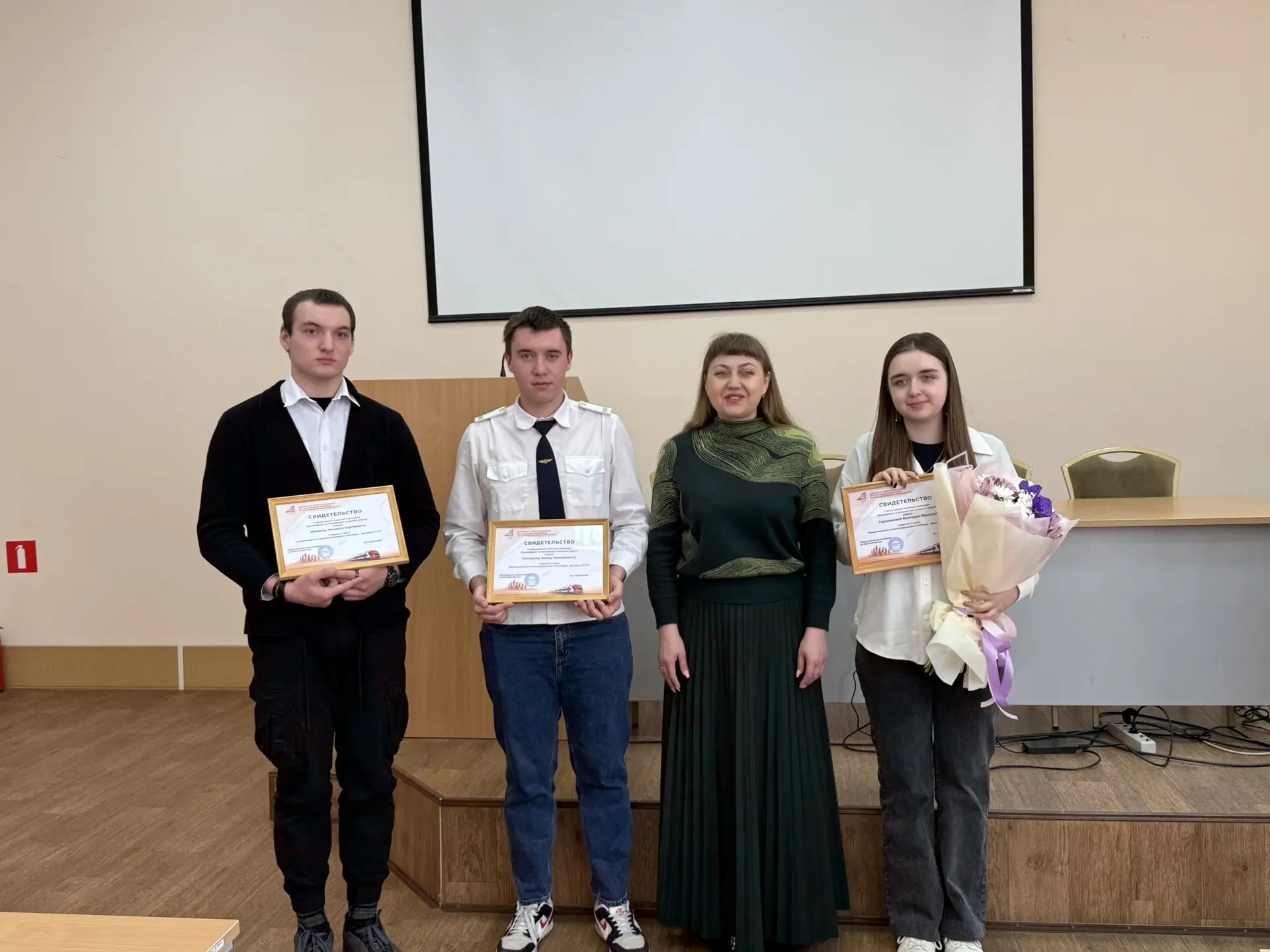 17 марта 2026 года руководитель Рязанского РОП Дорпрофжел на Московской железной дороге Николаева Марина Владимировна вручила Свидетельства о присуждении именной стипендии обучающимся Ожерельевского железнодорожного колледжа – филиала ПГУПС Герасимовой Виктории, Мейдеру Михаилу и Сяпкулову Амину. Поздравляем наших ребят!!!